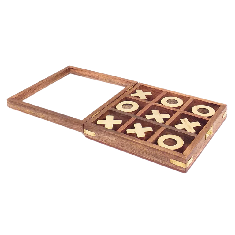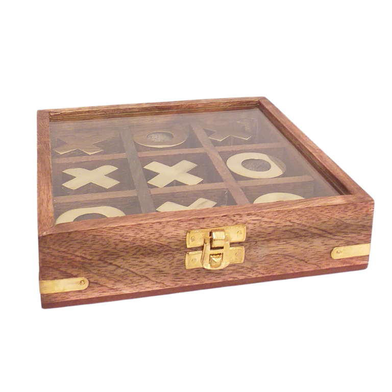 Juego ta-te-ti en caja de madera y detalles en dorado
